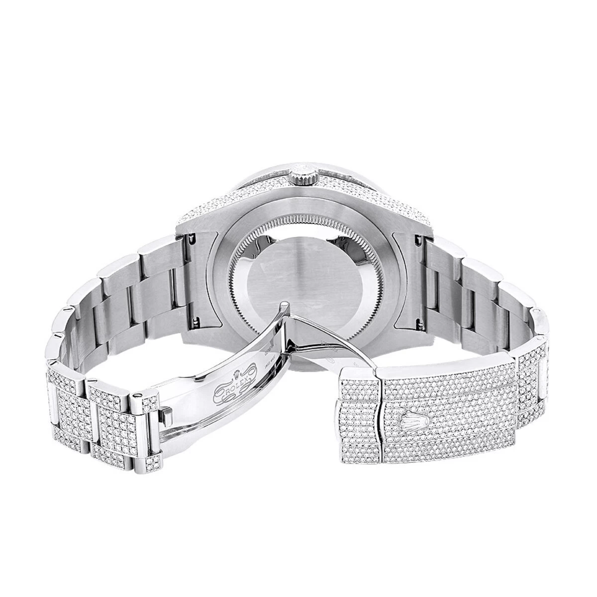 This Rolex Datejust Men’s Custom Diamond Watch features 25.2 carats of genuine diamonds, a fully diamond-paved case, bezel, and band. This Rolex Men’s Diamond Watch also showcases a dial paved with genuine diamonds and a date display at the 3 o’clock position. It is a truly unique watch that will really stand out. Please note: this custom Rolex diamond watch is pre-owned in excellent condition and comes with a 5-year warranty from ItsHot.com.