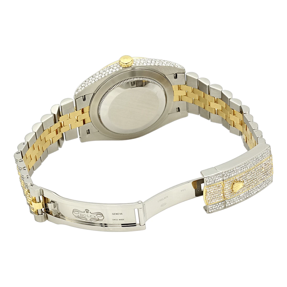 Men’s Iced Out Watch Rolex Datejust 41mm Black Dial Oyster Bracelet Diamond Bezel