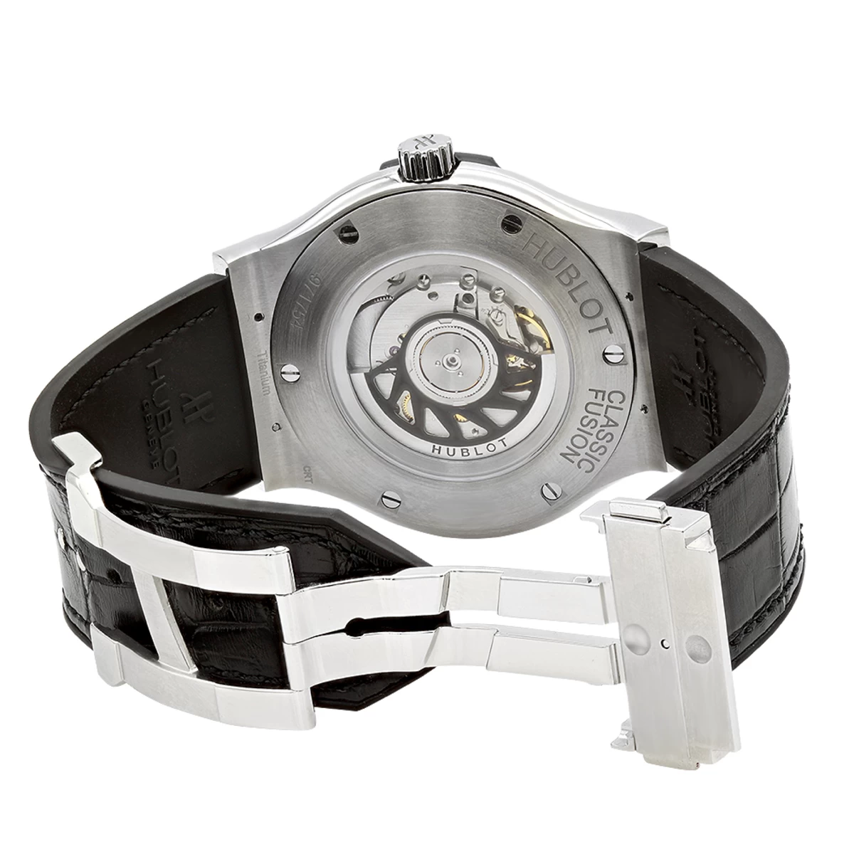 This 45mm Hublot Titanium Classic Fusion Diamond Watch for Men showcases 3.5 carats of sparkling round cut diamond perfectly pave set on a polished titanium case, titanium bezel and dial. Bezel secured with 6 polished “H” style titanium screws and polished titanium crown engraved with the Hublot logo, date window located at the 3 o’clock position. Hublot Caliber HUB1110, beats at 28,800 vph, composed out of 63 parts & has an approximate power reserve of 42 hours. Don’t miss your chance to get this authentic Hublot Men’s Watch with our discounted price!