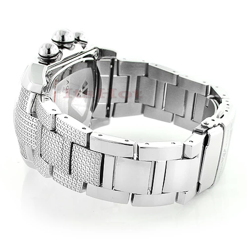 Affordable Aqua Master Men’s Watches! This Diamond Bubble Style Watch features 1.25 carats of round diamonds around the bezel, a black face with 3 mother of pearl subdials, a polished stainless steel case and a stainless steel band. This versatile men’s diamond Aqua Master watch showcases a Fine Japan-made chronograph movement and is conveniently water-resistant.