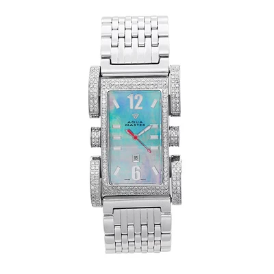 The Aqua Master Diamond Ladies Watch 2.75ct Flex Aquamarine Dial is a stunning timepiece that is sure to make a statement. This watch features a 22mm stainless steel case with a beautiful aquamarine dial and 2.75ct of diamonds. The watch is powered by a Swiss-Quartz movement and is water-resistant up to 30 meters. The watch also features a date indicator, second hand-indicator, and single time zone.This watch is perfect for any occasion, whether it be a night out on the town or a day at the office. The diamonds add a touch of elegance and sophistication to the watch, while the aquamarine dial adds a touch of color and vibrancy. The stainless steel case is durable and long-lasting, ensuring that your watch will stay looking great for years to come.The Aqua Master Diamond Ladies Watch 2.75ct Flex Aquamarine Dial is a luxurious timepiece that is sure to turn heads. With its beautiful design and quality craftsmanship, this watch is sure to become a favorite in your collection. The diamonds and aquamarine dial add a touch of glamour and sophistication to any outfit, making it the perfect accessory for any occasion.