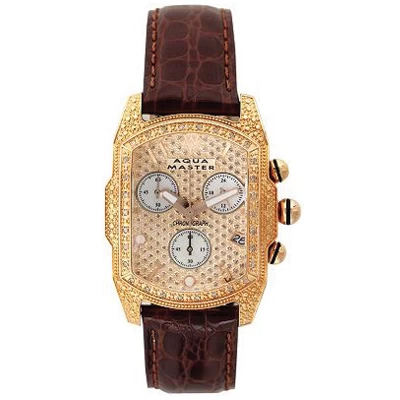 Affordable Aqua Master Ladies Watches! This Diamond Bubble Watch by AquaMaster features 20 round diamonds, 3 mother of pearl chronograph subdials, a polished stainless steel case and a genuine leather band. This versatile ladies diamond Aqua Master watch showcases a professional chronograph movement and is water-resistant to 30m.
