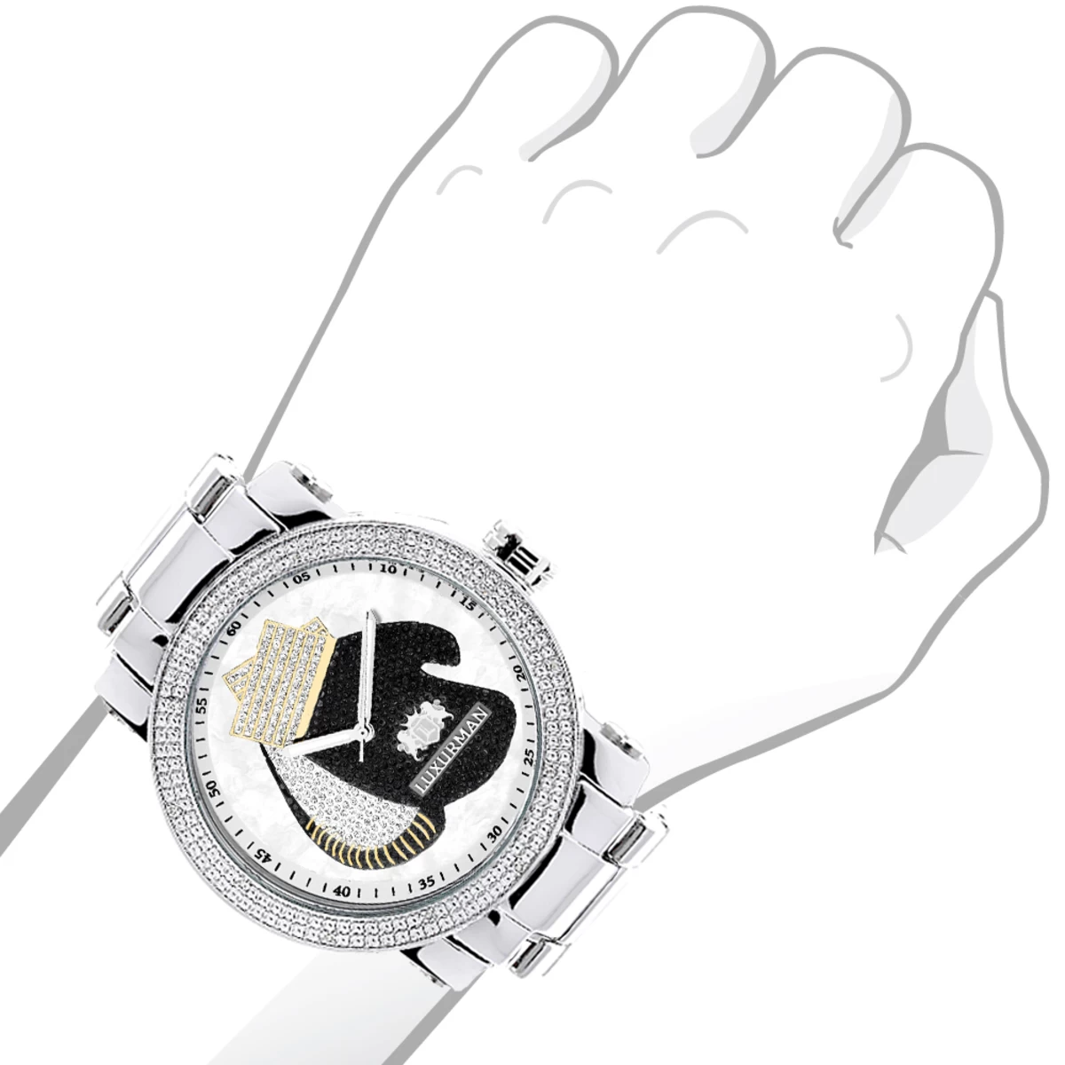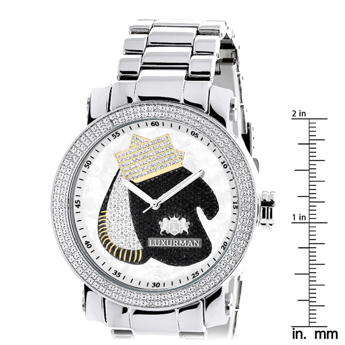 This Boxing Gloves Diamond Watch for Men by Luxurman is a limited edition men’s wrist watch and features 0.12 carats of genuine diamonds around the bezel, a polished silver stainless steel case with a stainless steel band and a white Mother of Pearl dial and boxing gloves design. This LUXURMAN diamond watch is a unique watch model, inspired by the boxing movie Southpaw, which features unique jewelry and custom pieces from ItsHot.com and Luxurman.