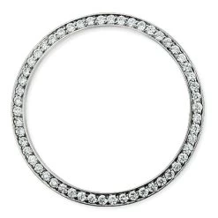 This Custom Diamond Bezel for Ladies Rolex Presidential Watch showcases 1.50 carats of dazzling round diamonds, each masterfully set in polished stainless steel. This fantastic diamond watch accessory is an afterr-market diamond bezel, custom made by ItsHot.com in New York. Watch must be purchased separately.