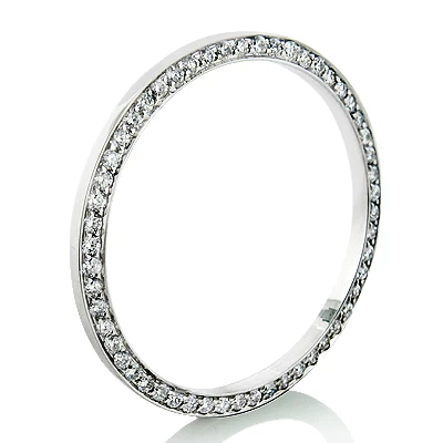 This Custom Diamond Bezel for Men Rolex Yachtmaster from our Custom Made Watch Bezels collection showcases 1.5 carats of dazzling round diamonds, each masterfully set in polished stainless steel. This fantastic diamond watch accessory is an after-market diamond bezel, custom made in New York. Watch must be purchased separately.