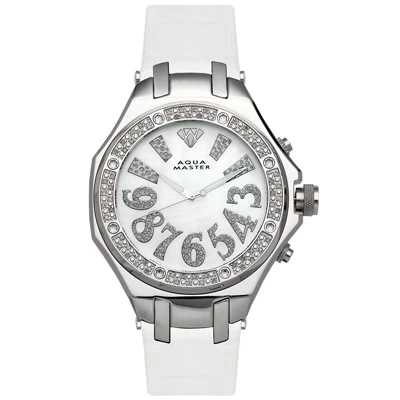 Luqurious Diamond Aqua Master Watches! This Men’s Diamond Watch by AquaMaster features 0.55 ctw of white diamonds masterfully set around the bezel and a white mother of pearl dial. This luxurious men’s diamond Aqua Master watch showcases a fine Japan-made quartz movement and is water-resistant.