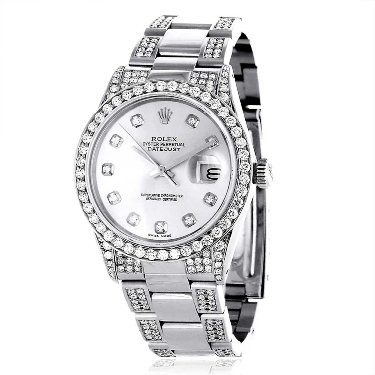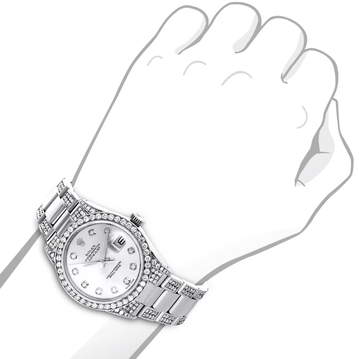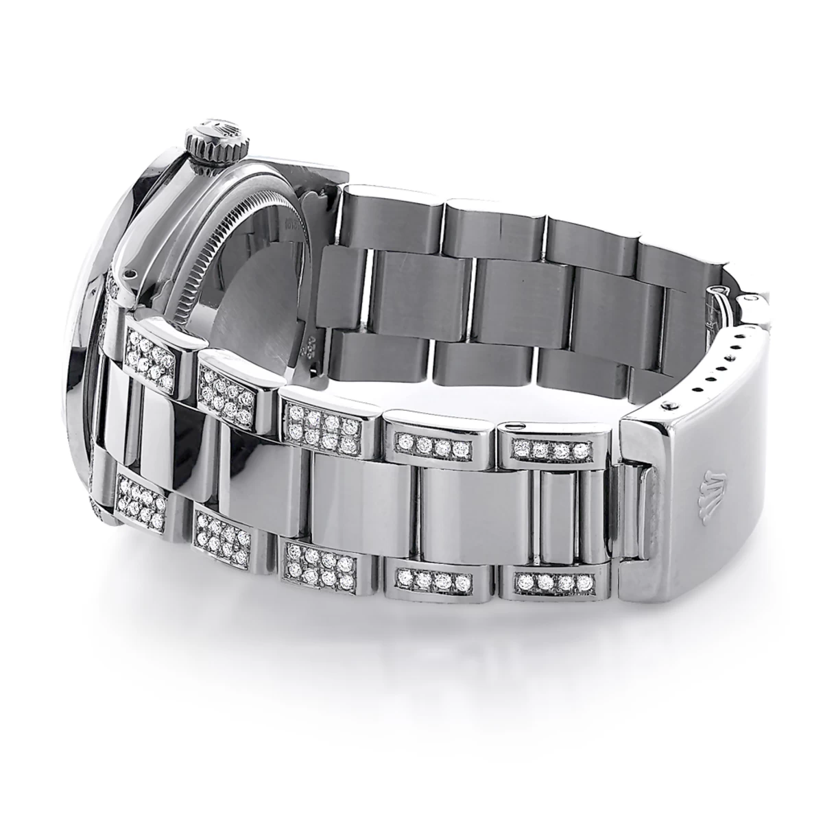 Please note: This custom Rolex diamond watch is pre-owned and in excellent condition and comes with a 5-year warranty from ItsHot.com. These pre-owned Rolex watches are authentic Rolex watches with genuine diamonds, in excellent condition, they are checked for authenticity and basic water resistance; watches will withstand an occasional rain just fine, but they are not diver’s watches and should not be worn in the shower or while swimming.