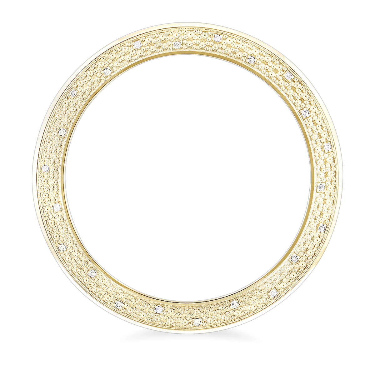 This Diamond Bezel Replacement for Luxurman Raptor Watch features 0.25ct carats of sparkling round diamonds expertly set in a stainless steel frame and plated in yellow gold. This diamond watch bezel is perfect bezel replacement for your men’s luxurman watch. This is a listing for a diamond bezel only, watch must be purchased separately.