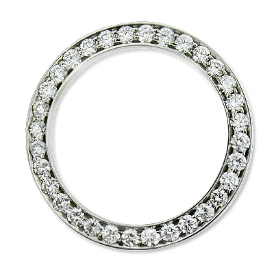 This Round Diamond Bezel for Midsize Rolex Datjest from our Custom Made watch Bezels collection showcases 2.5 carats of dazzling round diamonds, each masterfully set in polished stainless steel . This fantastic diamond watch accessory is an afterr-market diamond bezel, custom made by ItsHot.com in New York .Watch must be purchased separately .