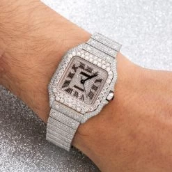 Unisex Diamond Watch Cartier Santos De Cartier 18K Gold Rose Gold Tone Dial