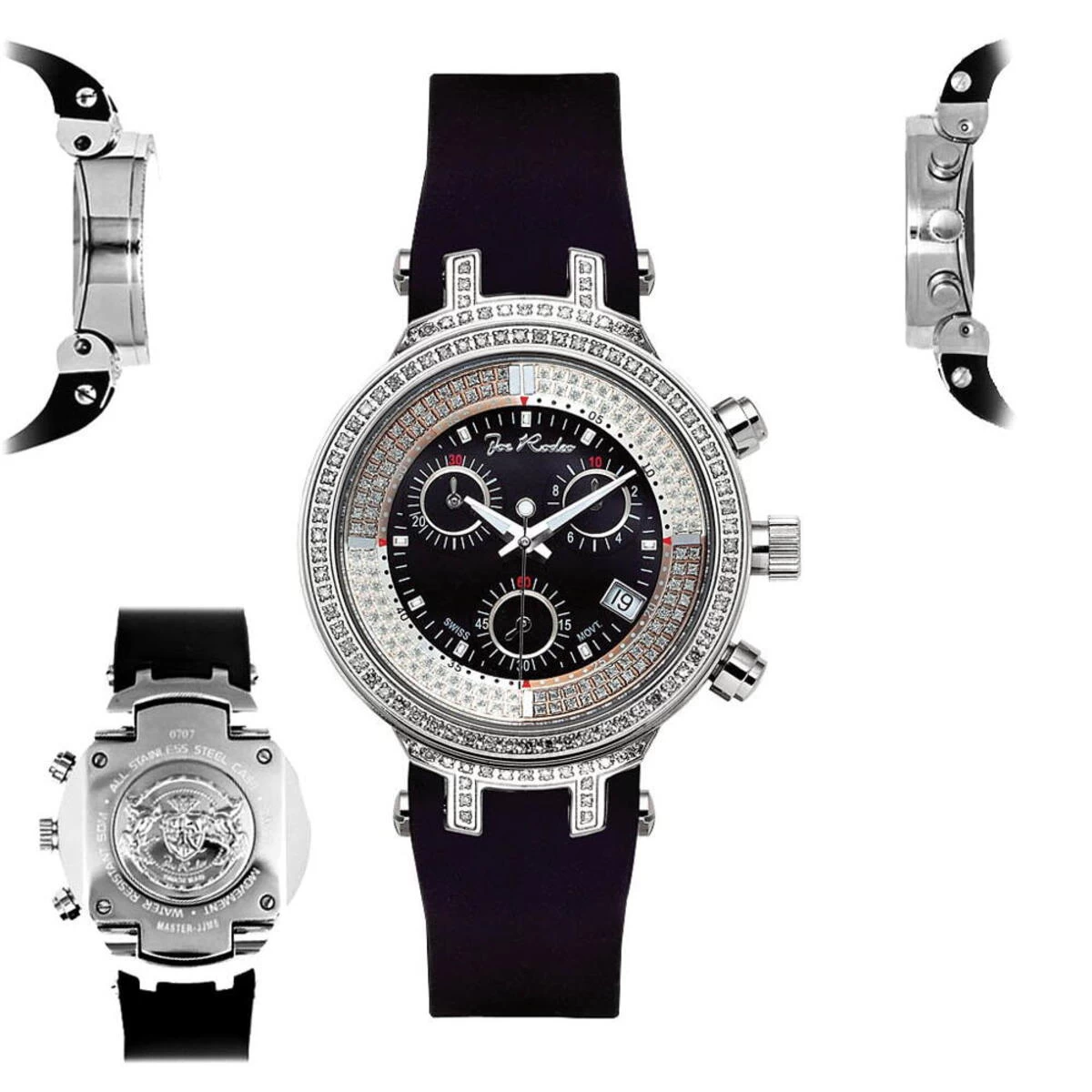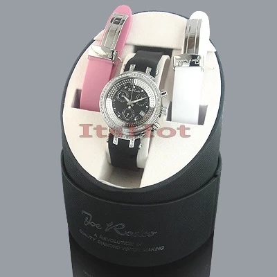 This impressive 0.90-carat diamond ladies JOJO watch features a scratch-free crystal glass, individually numbered and engraved stainless steel case-back. Diamond Bezel, polished Silver Stainless Steel case and Black dial. Fine Swiss-made quartz movement with chronograph function, center second and date. Water-resistant to 50 meters. Comes with two interchangeable straps in different colors. The patented strap adjusts once for a perfect fit, and comes on and off with the press of a button.