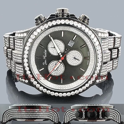 Real Hip Hop Watches: This Joe Rodeo Men’s Diamond Watch features 26.70 carats of sparkling white diamonds on the bezel, white diamonds on the sides and lugs of the black tone stainless steel case and band. This exquisite Joe Rodeo diamond watch showcases a black mother of pearl dial with three chronograph subdials paved in sparkling white diamonds, a date display window at the 4 o’clock position, all protected by a scratch-free crystal glass. This luxurious men’s diamond watch by Joe Rodeo is equipped with a super accurate Swiss-made chronograph quartz movement. The case is water-resistant to 100m (330 ft).