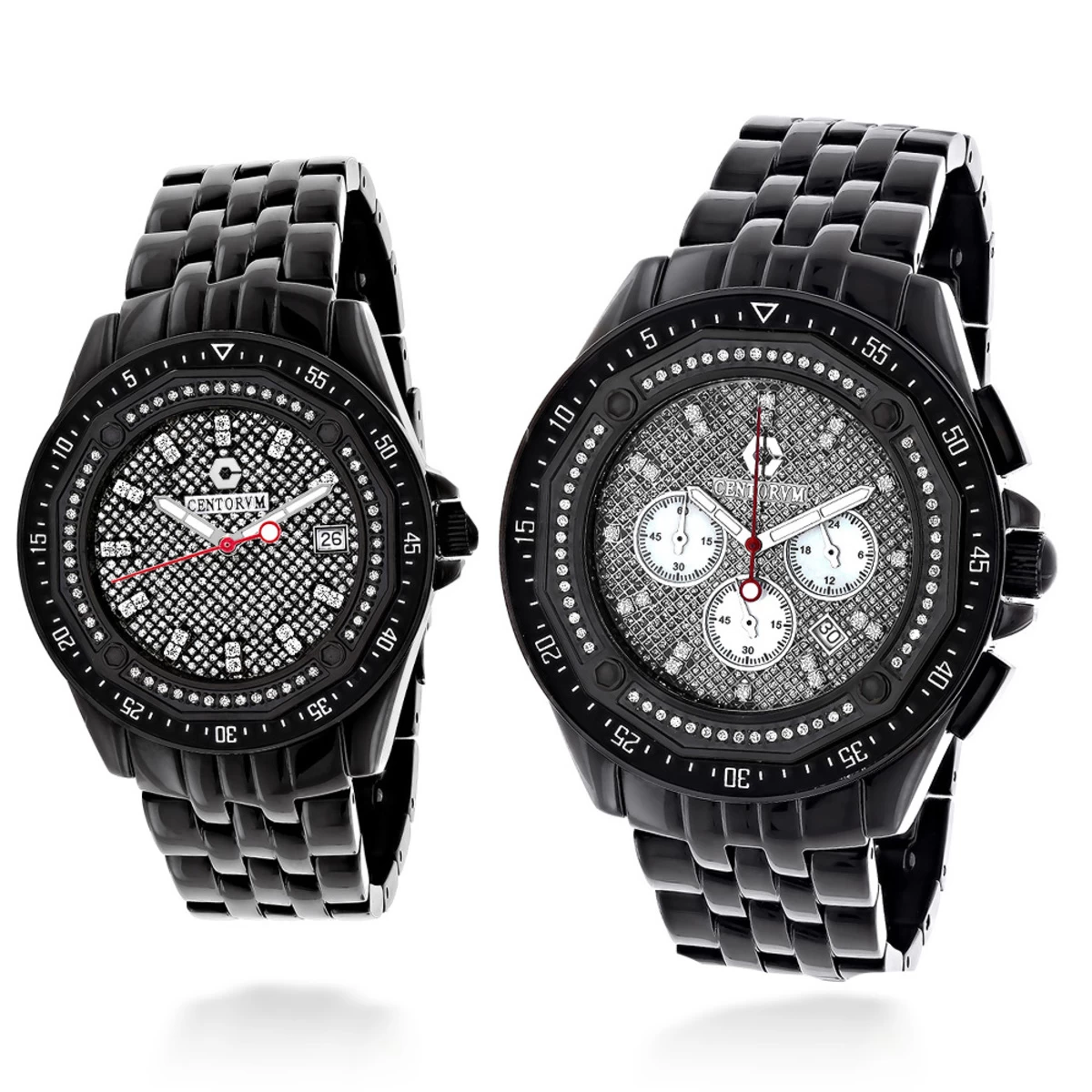 Be the first to review “His And Hers Black Centorum Chronograph 1.05ct Diamond Watch Set” Cancel reply