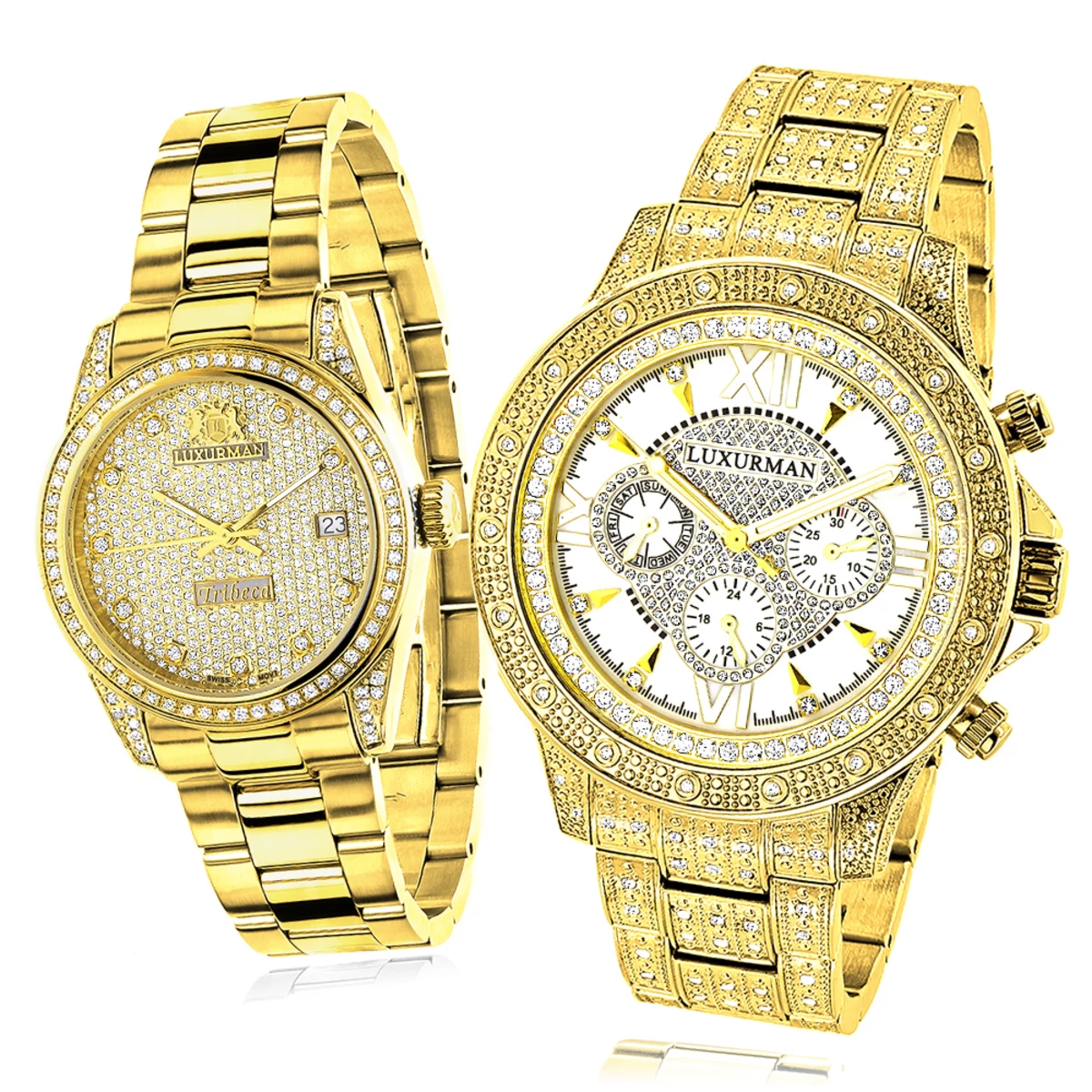 His and Hers Watches collection: If you are going to be selecting a matching watch set from our His and Hers watch collection for yourself and your better half, the classic Luxurman Diamond Watch is always a great option. These two matching diamond watches are plated in 18k yellow gold featuring a classic design, a yellow gold plated stainless steel case and yellow gold plated stainless steel band. Both of these Luxurman diamond watches are conveniently water-resistant to 3 ATM. The Luxurman Tribeca Diamond Watch for Her features 1.5 carats of genuine diamonds and a date display window at 3 o’clock position while the Luxurman Diamond Watch for Him features 1.25 carats of diamonds, and a white mother of pearl face with three subdials. Giving your partner a Luxurman Diamond Watch will surely garner their attention and ensure that you are both at the leading edge of fashion as you go out together. “Love is sharing quality time together”.