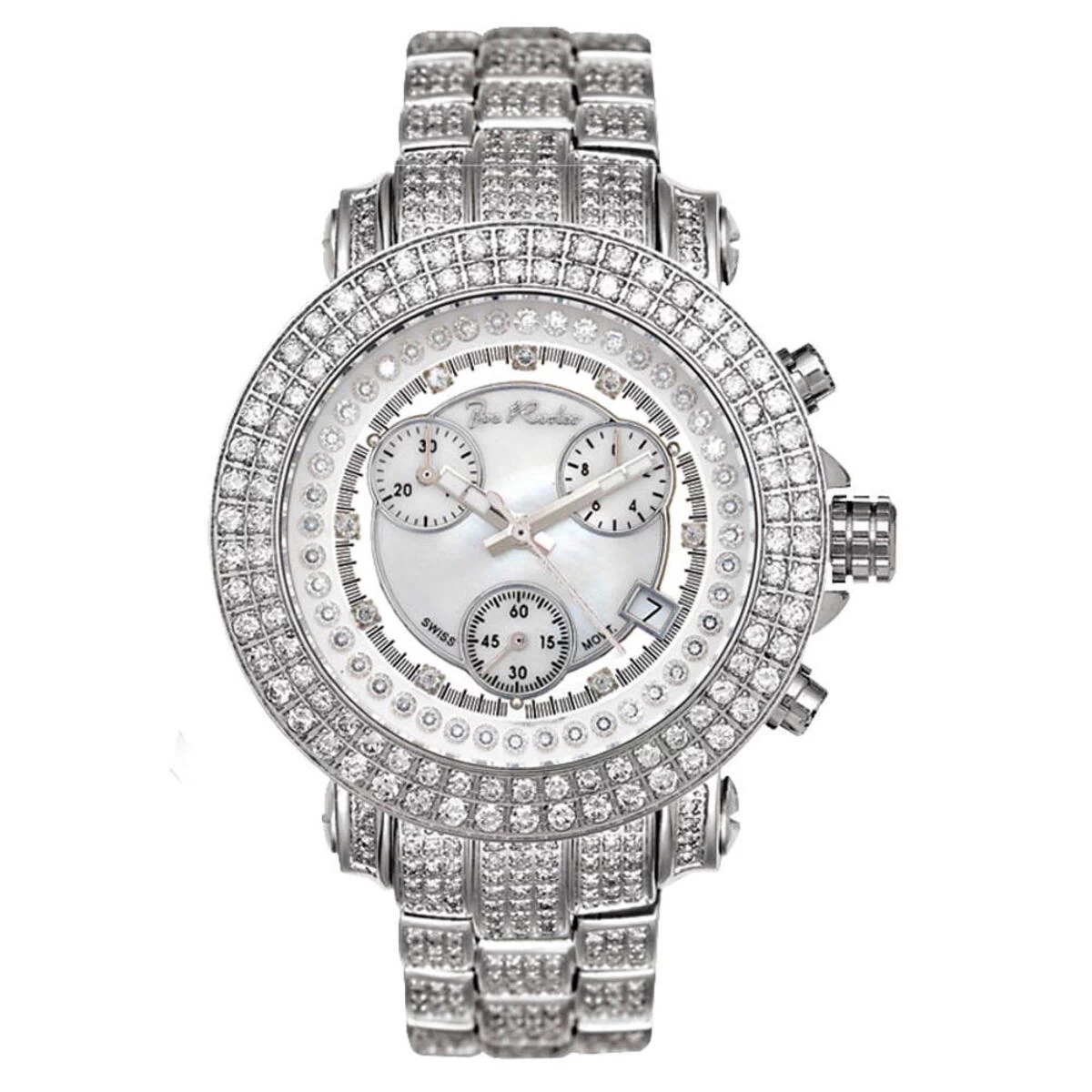 Luxurious Iced Out Watches! This Joe Rodeo Ladies Diamond Watch features clear round cut diamonds masterfully set around its bezel, lugs and band totaling 10.00 ctw. The white mother of pearl face showcases three chronograph subdials and a date display window at 4 o’clock position. This Joe Rodeo watch is 10 ATM (100 meters/330 ft) water-resistant and the stainless steel case houses a very accurate Swiss-made quartz movement with a chronograph function, a center second and date indicator. This Joe Rodeo watch comes with two extra interchangeable straps in different colors. The patented strap adjusts once for a perfect fit, and comes on and off with a press of a button.
