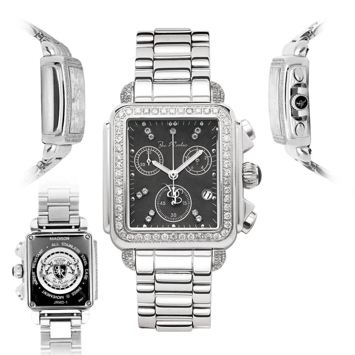 Unique Joe Rodeo watches: this Joe Rodeo Madison watch features 2 ctw. of genuine diamonds, gold plated stainless steel case and an individually numbered and ingraved stainless steel back. Water-resistant to 100m (300ft). This diamond Joe Rodeo watch is guaranteed to be 100% brand new and authentic and will come in original manufacturing packaging with all original paperwork. 1 Year Manufacturer’s warranty.