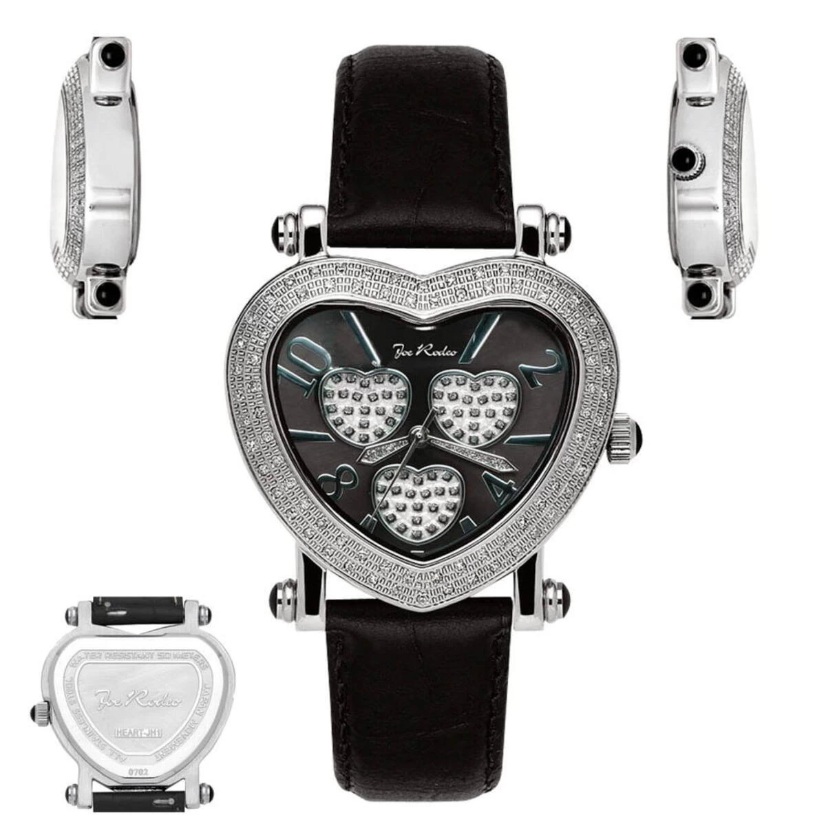 Unique Joe Rodeo watches: this Joe Rodeo Moving Heart watch features 0.75 ctw. of genuine diamonds, gold plated stainless steel case and an individually numbered and ingraved stainless steel back. Water-resistant to 100m (300ft). This diamond Joe Rodeo watch is guaranteed to be 100% brand new and authentic and will come in original manufacturing packaging with all original paperwork. 1 Year Manufacturer’s warranty.