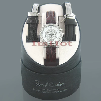 Luxurious Joe Rodeo Watches! This JOJO Ladies Diamond Watch Passion features a polished stainless steel case and 0.60 carats of diamonds on the bezel and lugs. Fine Japan-made quartz movement with chronograph function, center second and date will accurately keep time for you. This women’s diamond watch by Joe Rodeo comes with two interchangeable leather bands in different colors. The patented strap adjusts once for a perfect fit, and comes on and off with the press of a button. Water-resistant to 100 meters (330 ft).