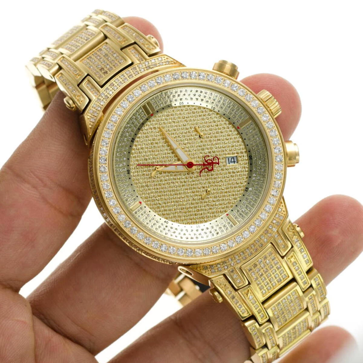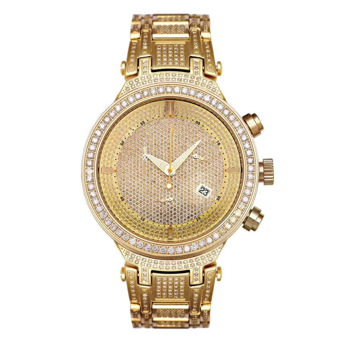 Iced Out Men’s Diamond Watch Luxurman 2ct Yellow Gold Plated