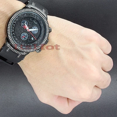 Trendy Joe Rodeo Watches: This Master Diamond Watch features 2.20 carats of genuine diamonds masterfully set on the bezel and lugs of the black tone stainless steel case. This Joe Rodeo diamond watch showcases a dial paved in black sparkling stones with three blue mother of pearl chronograph subdials, a date window at the 4 o’clock position and a black rubber band. This men’s diamond watch comes with two interchangeable rubber bands in different colors. The patented strap adjusts once for a perfect fit, and comes on and off with the press of a button.