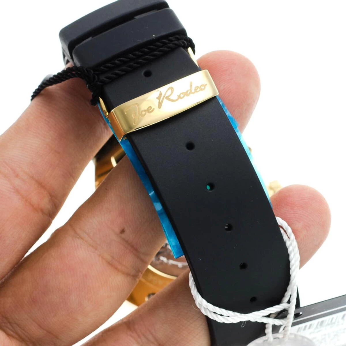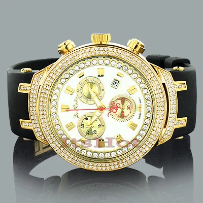 Designer Joe Rodeo Watches: This Master Model Men’s Diamond Watch features 2.20 carats of genuine diamonds. This Joe Rodeo diamond watch showcases a white mother of pearl dial with three chronograph subdials, a date window at the 4 o’clock position and a row of white glistening stones around the dial. This trendy men’s watch comes with two interchangeable rubber straps in different colors. The patented strap adjusts once for a perfect fit, and comes on and off with the press of a button.