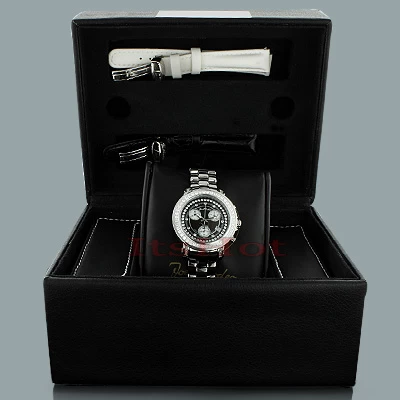 This Joe Rodeo Rio Women’s Diamond Watch features 2.00 carats of genuine diamonds masterfully set on the bezel and lugs of the silver tone stainless steel case. The dial has three chronograph subdials and a date display window at the 4 o’clock position. This Joe Rodeo watches collection piece comes with a fine Swiss-made quartz movement with a chronograph function, center second and date. Water-resistant to 100 meters. This diamond watch by Joe Rodeo comes with two interchangeable straps in different colors. The patented strap adjusts once for a perfect fit, and comes on and off with the press of a button.