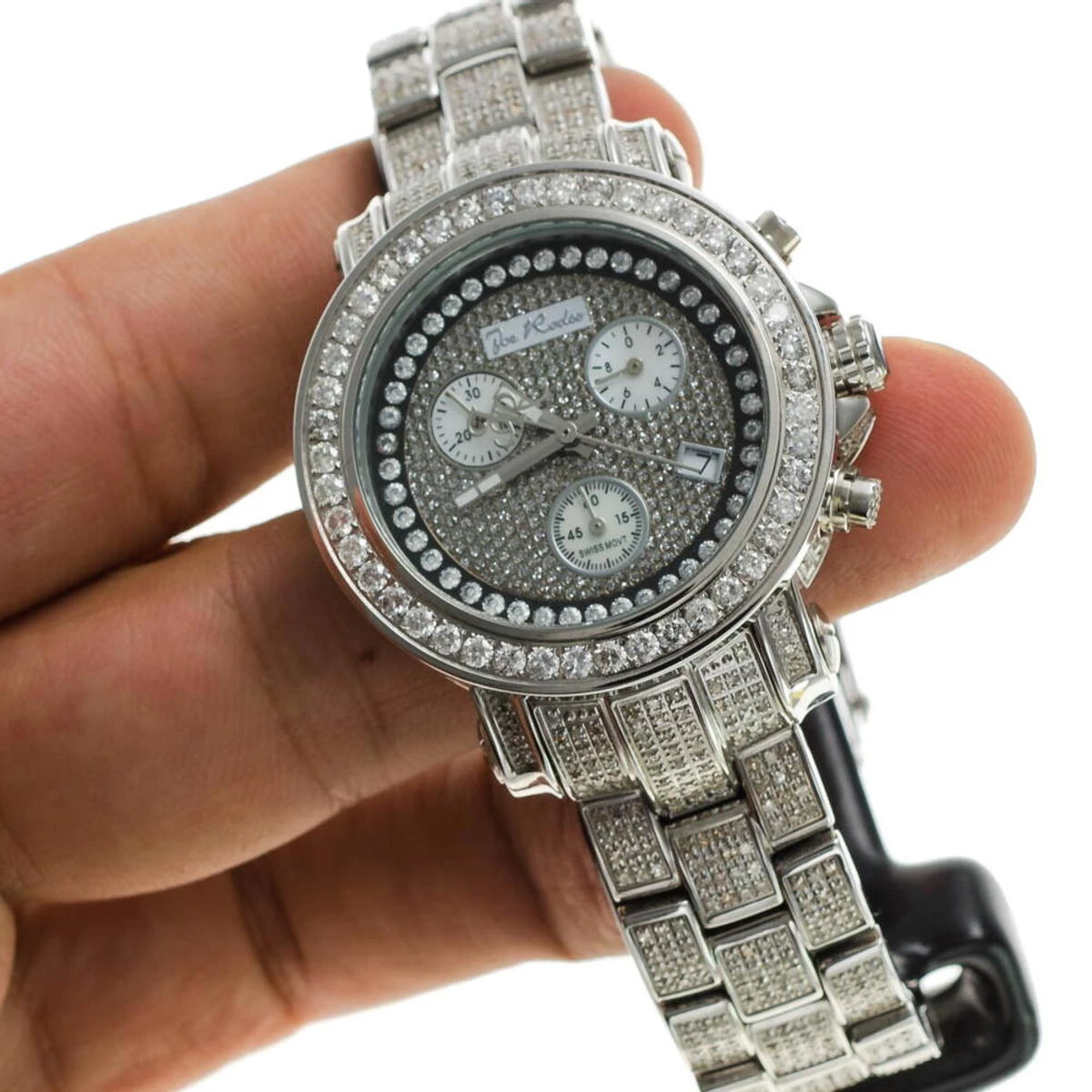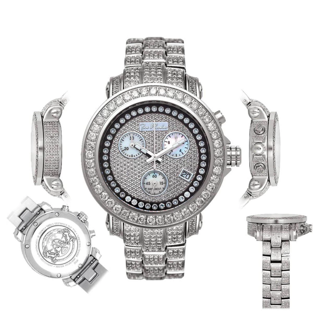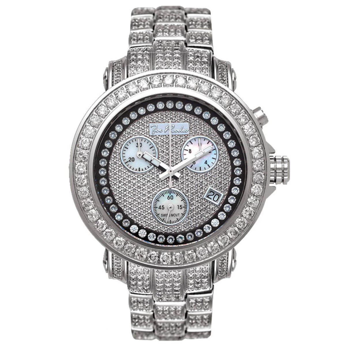 This JoJo Rio Women’s Diamond Watch by Joe Rodeo features 9.50 carats of round diamonds, a polished rounded Silver stainless steel case and band all paved in white glistening diamonds, scratch-free crystal glass. Silver Stainless steel dial. Fine Swiss-made quartz movement with chronograph function. Water resistant to 100 m (330 ft). This iced out watches collection piece by Joe Rodeo comes with two interchangeable straps in different colors. The patented strap adjusts once for a perfect fit, and comes on and off with the press of a button.