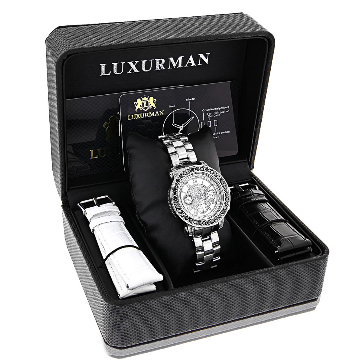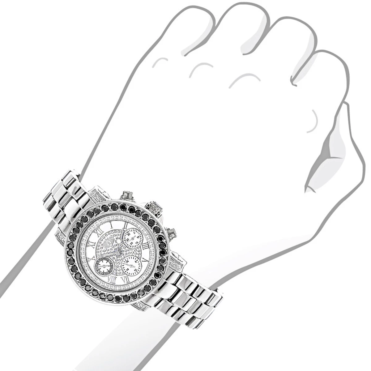 Luxurman Black Diamond Watch For Men 2ct Fully Iced Out Oversized