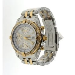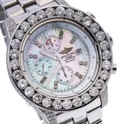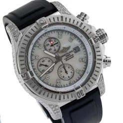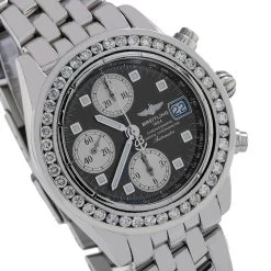 Men’s Diamond Watch Breitling Chronomat 39mm Black Dial Stainless Steel 2ct Diamonds