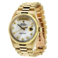 Diamond Men’s Rolex Day-Date Watch 36mm 18K Gold WIth Light Blue Mother-of-Pearl Dial