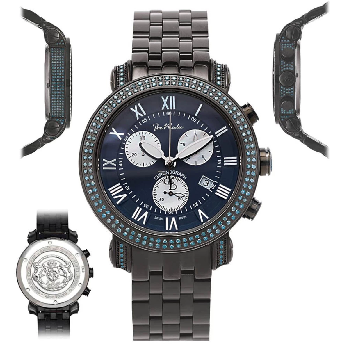 The Joe Rodeo Classic Men’s Blue Diamond Watch 3.5 is the perfect timepiece for the modern man. This stylish watch features a stainless steel case with a diameter of 44mm and a total carat weight of 3.5. The blue dial is adorned with diamond hour markers and a date indicator at the 3 o’clock position. The watch is powered by a Swiss-quartz movement and is water resistant up to 10 ATM (100 meters). The chronograph and second hand-indicator functions make this watch a great choice for those who need to keep track of time.The men’s diamond watch is the perfect accessory for any occasion. The stainless steel case and band are durable and stylish, and the blue dial is eye-catching and sophisticated. The diamond hour markers add a touch of luxury to the watch, making it a great choice for any man who wants to make a statement. The chronograph and second hand-indicator functions make this watch a great choice for those who need to keep track of time.The men’s diamond watch is the perfect timepiece for the modern man. This stylish watch features a stainless steel case with a diameter of 44mm and a total carat weight of 3.5. The blue dial is adorned with diamond hour markers and a date indicator at the 3 o’clock position. The watch is powered by a Swiss-quartz movement and is water resistant up to 10 ATM (100 meters). The chronograph and second hand-indicator functions make this watch a great choice for those who need to keep track of time. The Joe Rodeo Classic Men’s Blue Diamond Watch 3.5 is the perfect accessory for any occasion.
