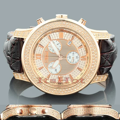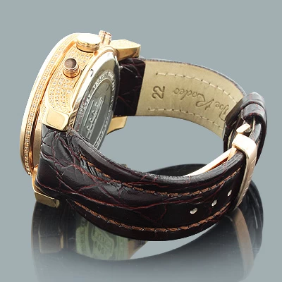 Men’s Diamond Watches: This Joe Rodeo Watch JoJo 2000 Rose Gold Plated features 5.5 carats of genuine diamonds masterfully set on the sides, lugs and bezel of the rose gold tone stainless steel case. This JoJo diamond watch by Joe Rodeo showcases a rose gold stainless steel dial with three white mother of pearl chronograph subdials and a date window at the 4 oclock position. This men’s diamond watch comes with two interchangeable rubber straps in different colors. The patented strap adjusts once for a perfect fit, and comes on and off with the press of a button.