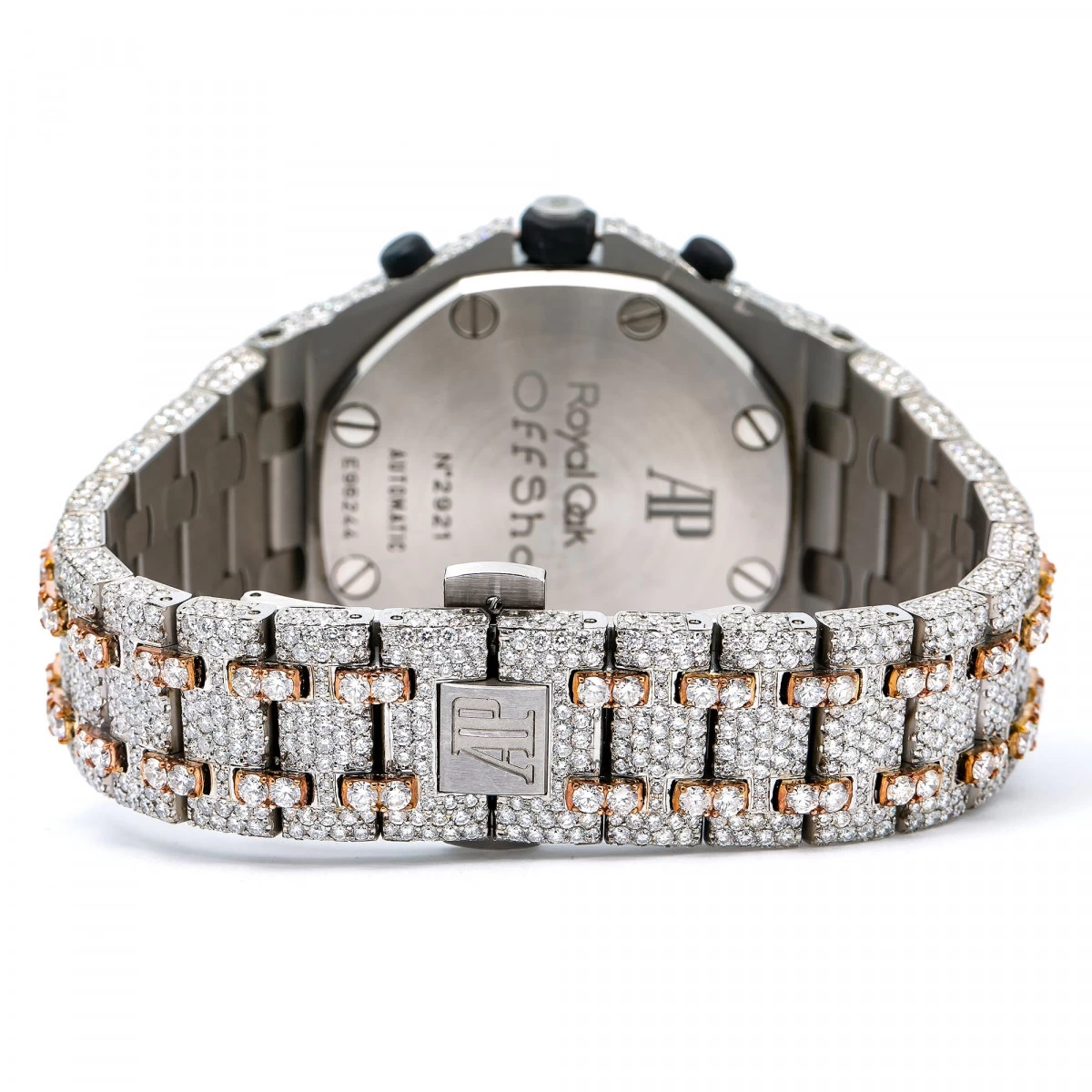 The Audemars Piguet Royal Oak Offshore Rose Gold Men’s Diamond Watch is a luxurious timepiece that is sure to turn heads. This watch features a 42mm case diameter and is crafted from 18K rose gold. The bezel is adorned with diamonds and has a rose gold color. The bracelet is crafted from both 18K rose gold and stainless steel, giving it a unique look. The dial is a rose gold tone and is set with diamonds, giving it a luxurious look. The watch is powered by an automatic movement and is water resistant up to 100 meters.This watch is perfect for any man who appreciates luxury and style. The diamonds on the bezel and dial give it a sparkle that is sure to draw attention. The automatic movement ensures that the watch is always accurate and reliable. The water resistance up to 100 meters makes it perfect for everyday wear.With its diamonds, 18K rose gold, and stainless steel, this watch is sure to turn heads. The automatic movement and water resistance make it perfect for everyday wear.