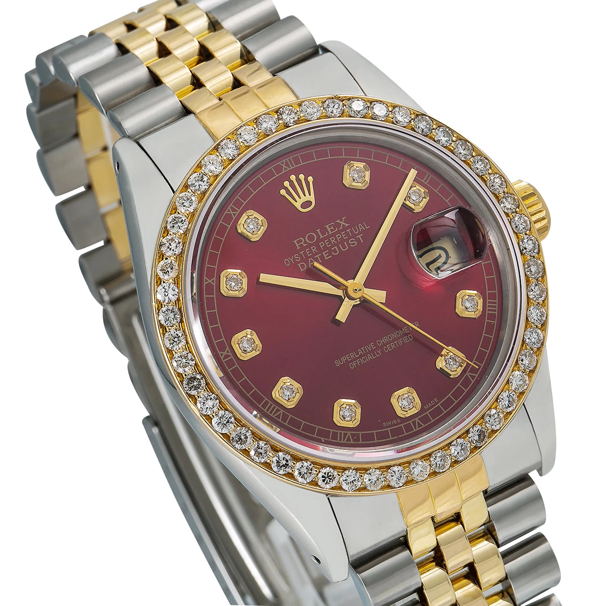 Be the first to review “Men’s Diamond Watch Rolex Datejust 36mm Jubilee Bracelet Red Dial Yellow Gold And Stainless Steel” Cancel reply