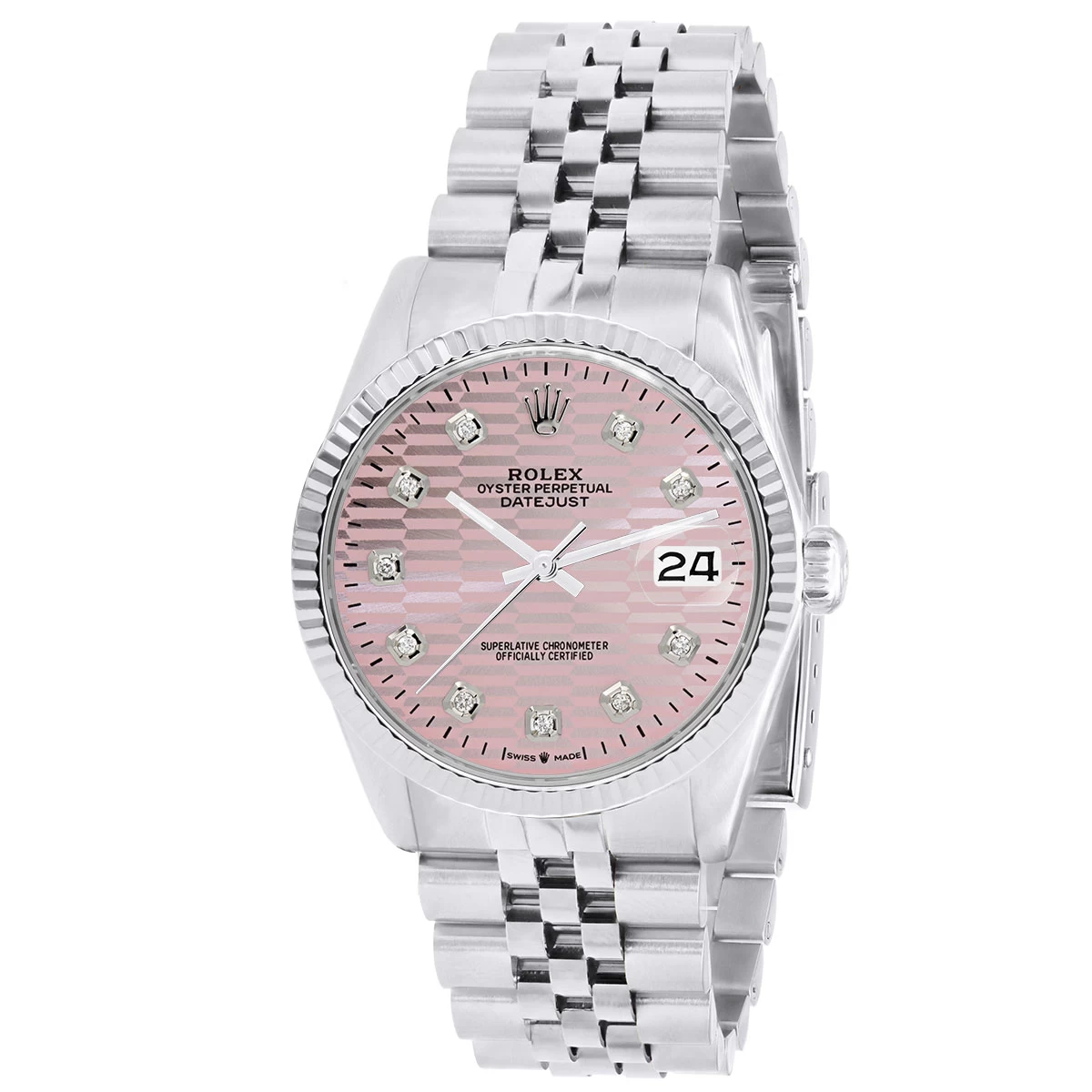 Men’s Diamond Watch Watch Rolex Datejust 36mm Rose Print Dial Jubilee Bracelet. This Diamond Watch Rolex watch is pre-owned, in excellent condition, and comes in a Rolex box with a full warranty from ItsHot. Customize the look of the watch if you prefer with Diamond Watch bezel or fluted bezel. Each watch can be additionally customized with Diamond Watchs on the case as well as band (please contact us for details).