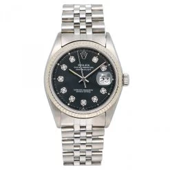 Men’s Diamond Watch Rolex Datejust White Gold Bezel 36mm Black Dial W01329