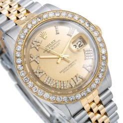 Men’s Diamond Watch Rolex Datejust Yellow Gold 36mm Champagne Dial W00924