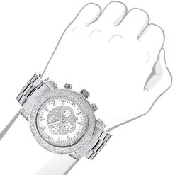 Men’s Diamond Watch 3 Carat Swiss Mvt Black Leather Band Luxurman Liberty