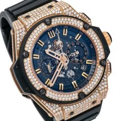 Men’s Diamond Watch Hublot King Power 18K Gold 48mm Black Dial
