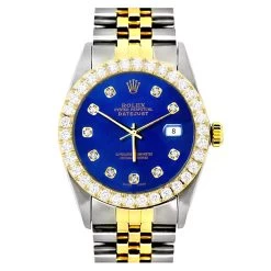 36mm Rolex Datejust Men’s Diamond Watch Stainless Steel Yellow Gold Blue Dial