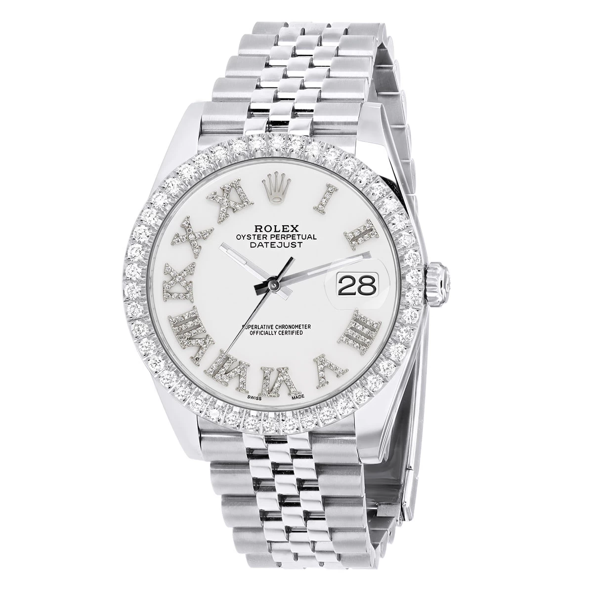 Men’s Watch Rolex Datejust 41mm White Dial Jubilee Bracelet Diamond Bezel. This diamond Rolex watch is pre-owned, in excellent condition, and comes in a Rolex box with a full warranty from ItsHot. Customize the look of the watch if you prefer with diamond bezel or fluted bezel. Each watch can be additionally customized with diamonds on the case as well as band (please contact us for details).