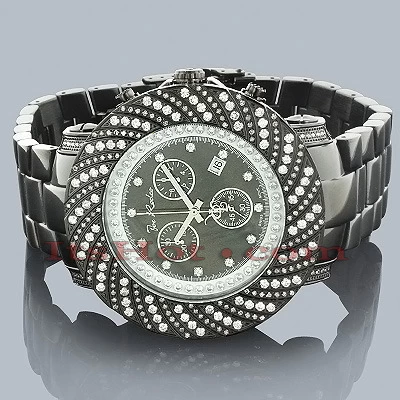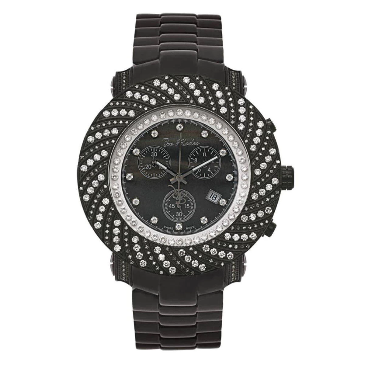 New Joe Rodeo Watches: This JoJo Junior Diamond Watch features 4.25 carats of sparkling white diamonds on the bezel and the lugs of the black tone stainless steel case, and black stainless steel band. This exquisite Joe Rodeo diamond watch showcases a black mother of pearl dial with three chronograph subdials, a date display window at the 4 o’clock position, and a row of white stones around it. This luxurious men’s diamond watch by Joe Rodeo is equipped with a super accurate Swiss-made chronograph quartz movement. The case is water-resistant to 100m (330 ft).