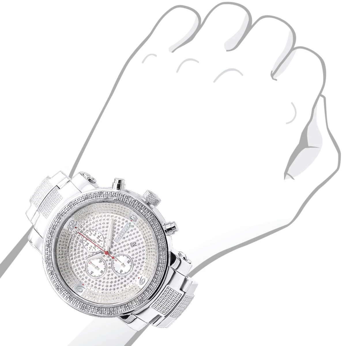 Men’s Chronograph Real Diamond Watch with 0.12 carats of white genuine diamonds. Oversized 51mm stainless steel case and stainless steel band. High quality Japanese quartz movement with Analog display, provide precise time keeping. 1 years manufacturer’s warranty by JoJino. 30 Days full return/exchange policy. Watches Ship out Insured with signature tracking from NYC Diamond District