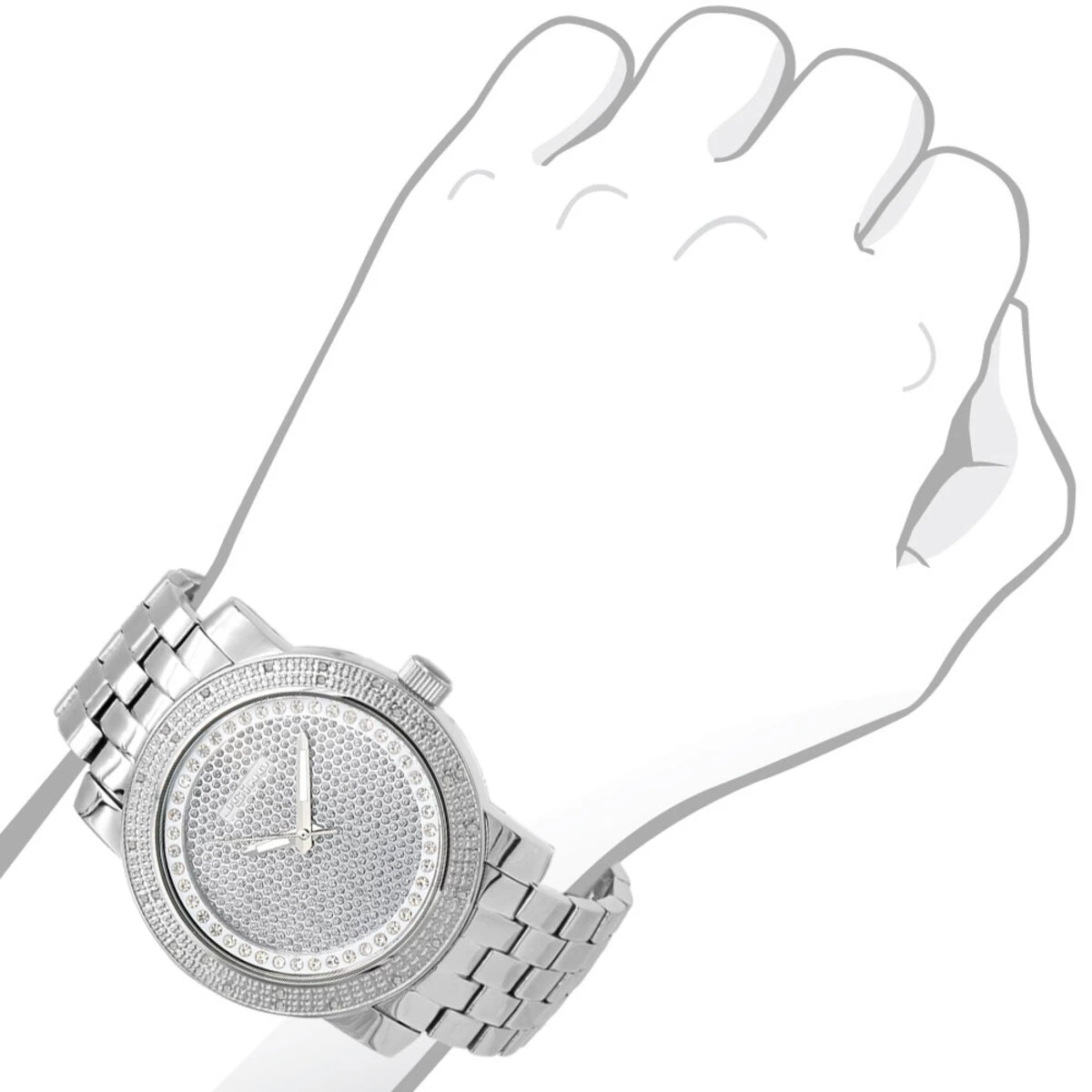 Men’s Real Diamond Watch with 0.25 carats of white genuine diamonds. Oversized 47mm stainless steel case and stainless steel band. High quality Japanese quartz movement with Analog display, provide precise time keeping. 1 years manufacturer’s warranty by JoJino. 30 Days full return/exchange policy. Watches Ship out Insured with signature tracking from NYC Diamond District