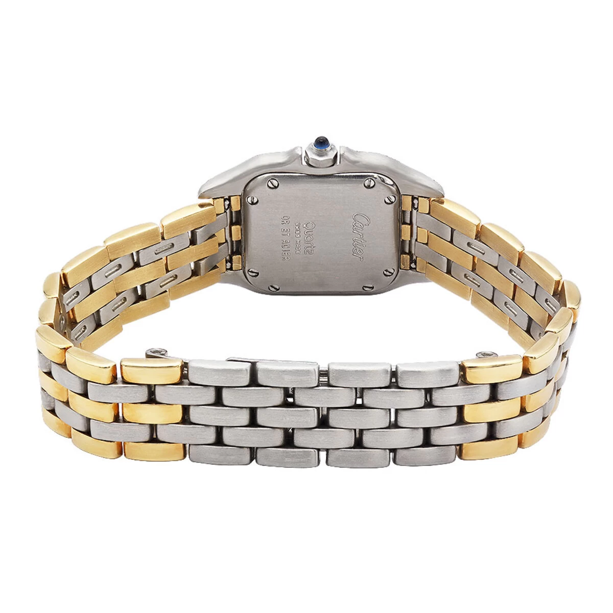 The Cartier Panthere 21mm women’s diamond watch is a timeless classic that will never go out of style. This luxurious watch features a square case crafted from stainless steel and 18K yellow gold, with a bezel set with sparkling white diamonds. The white dial is adorned with black Roman numerals and hands and is protected by a scratch-resistant sapphire crystal. The bracelet is crafted from 18K yellow gold and stainless steel and is secured with a deployment clasp. Powered by a Swiss quartz movement, this watch is accurate and reliable. With a total carat weight of 1 ct, this watch is sure to turn heads. Whether you’re looking for a classic business watch or a luxurious accessory for a night out, the Cartier Panthere 21mm Watch is the perfect choice. With its timeless design and quality craftsmanship, this watch is sure to be a treasured piece in your collection for years to come. This diamond Cartier watch is pre-owned, in excellent condition, and comes in a Cartier box with a 5-year full warranty from ItsHot.com.