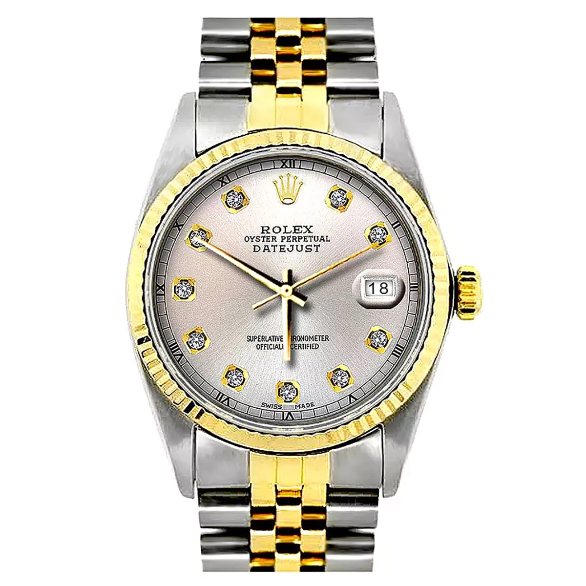 Men’s Diamond Rolex Oyster Perpetual Datejust Gold & Stainless Steel Watch White Dial