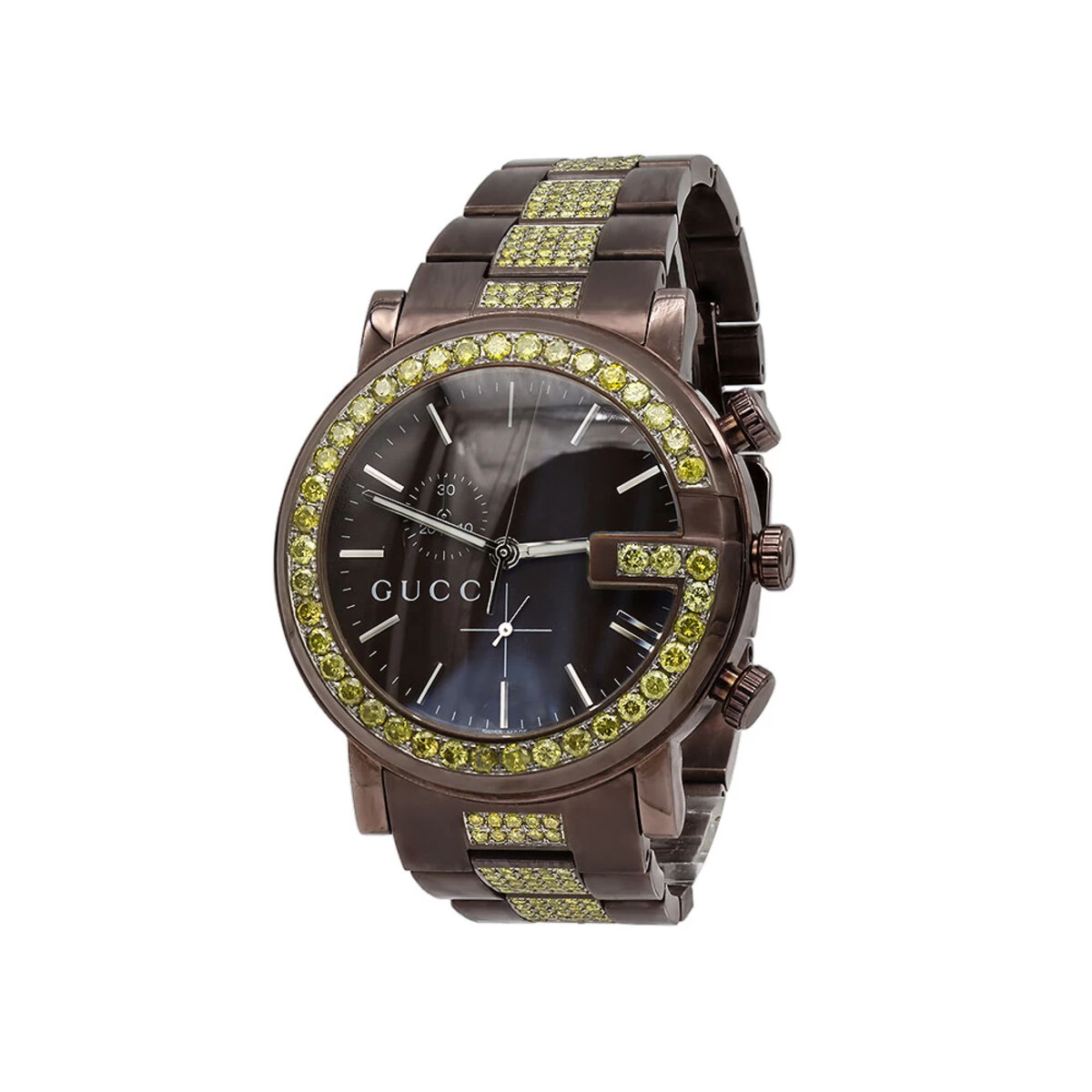 Be the first to review “Unique Brown 101M G-Chrono Gucci Yellow Diamond Watch For Men 6 Carats YA101341” Cancel reply