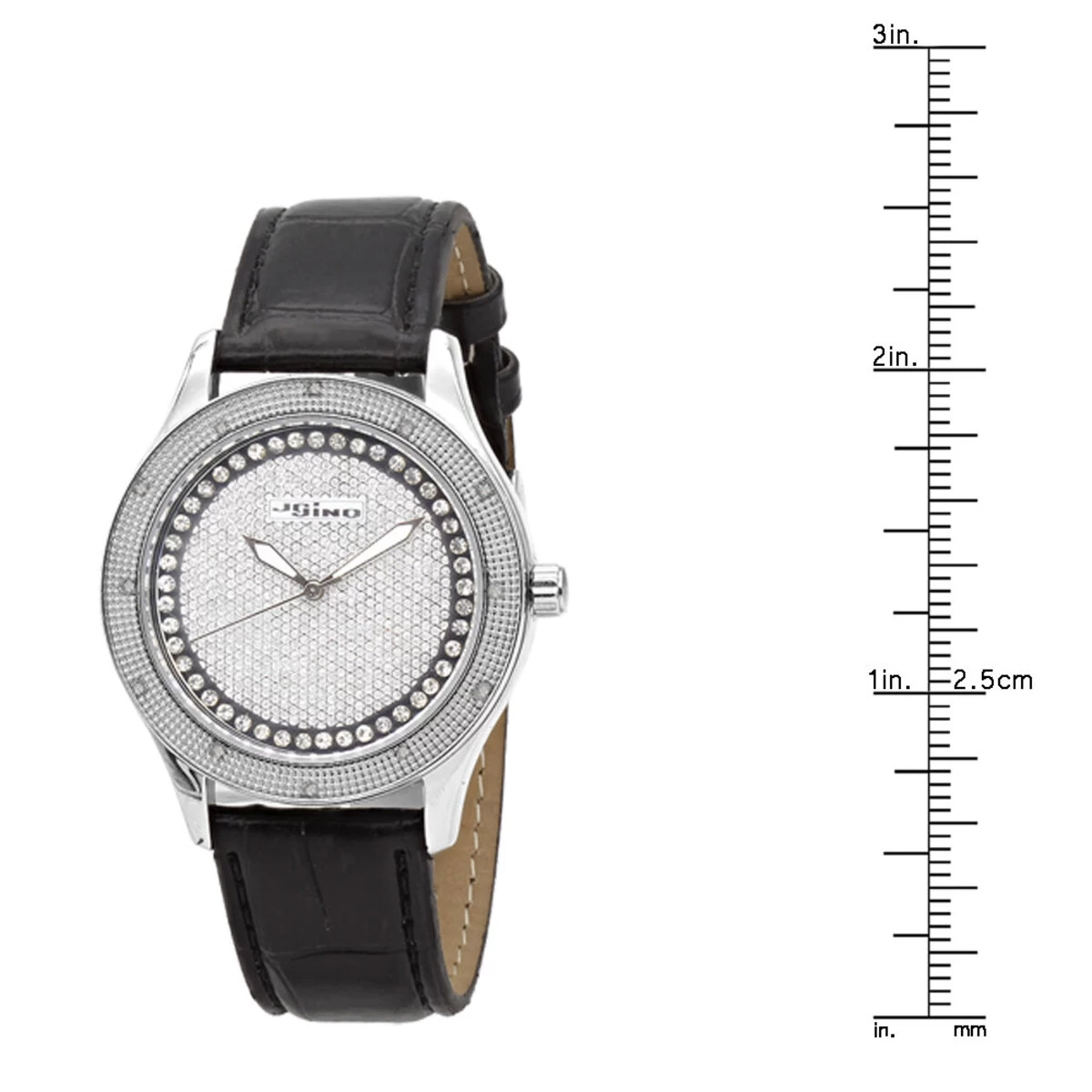 Introducing the JoJino Diamond Watch for Women Black Leather Band 0.12ct Iced Out Dial. This stunning timepiece is the perfect accessory for any woman who wants to add a touch of elegance and sophistication to her look. The watch features a black leather band, a 40mm case diameter, and a silver dial with 0.12ct of iced out diamonds. The Japanese-Quartz movement ensures accuracy and reliability, while the tang buckle clasp ensures a secure fit.The JoJino Diamond Watch is the perfect way to add a touch of sparkle to any outfit. The black leather band is comfortable and stylish, while the 0.12ct of iced out diamonds adds a touch of glamour. The silver dial is easy to read and the Japanese-Quartz movement ensures accuracy and reliability. The tang buckle clasp ensures a secure fit, so you can be sure your watch will stay in place.The JoJino Diamond Watch is the perfect accessory for any woman who wants to add a touch of elegance and sophistication to her look. Whether you’re attending a formal event or just want to add a bit of sparkle to your everyday look, this watch is sure to make a statement. With its classic design and 0.12ct of iced out diamonds, this watch is sure to turn heads.So, if you’re looking for a timeless and elegant timepiece, the JoJino Diamond Watch for Women Black Leather Band 0.12ct Iced Out Dial is the perfect choice. With its classic design and 0.12ct of iced out diamonds, this watch is sure to make a statement. Whether you’re attending a formal event or just want to add a bit of sparkle to your everyday look, this watch is sure to make a statement.