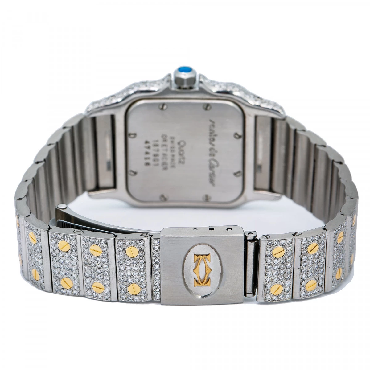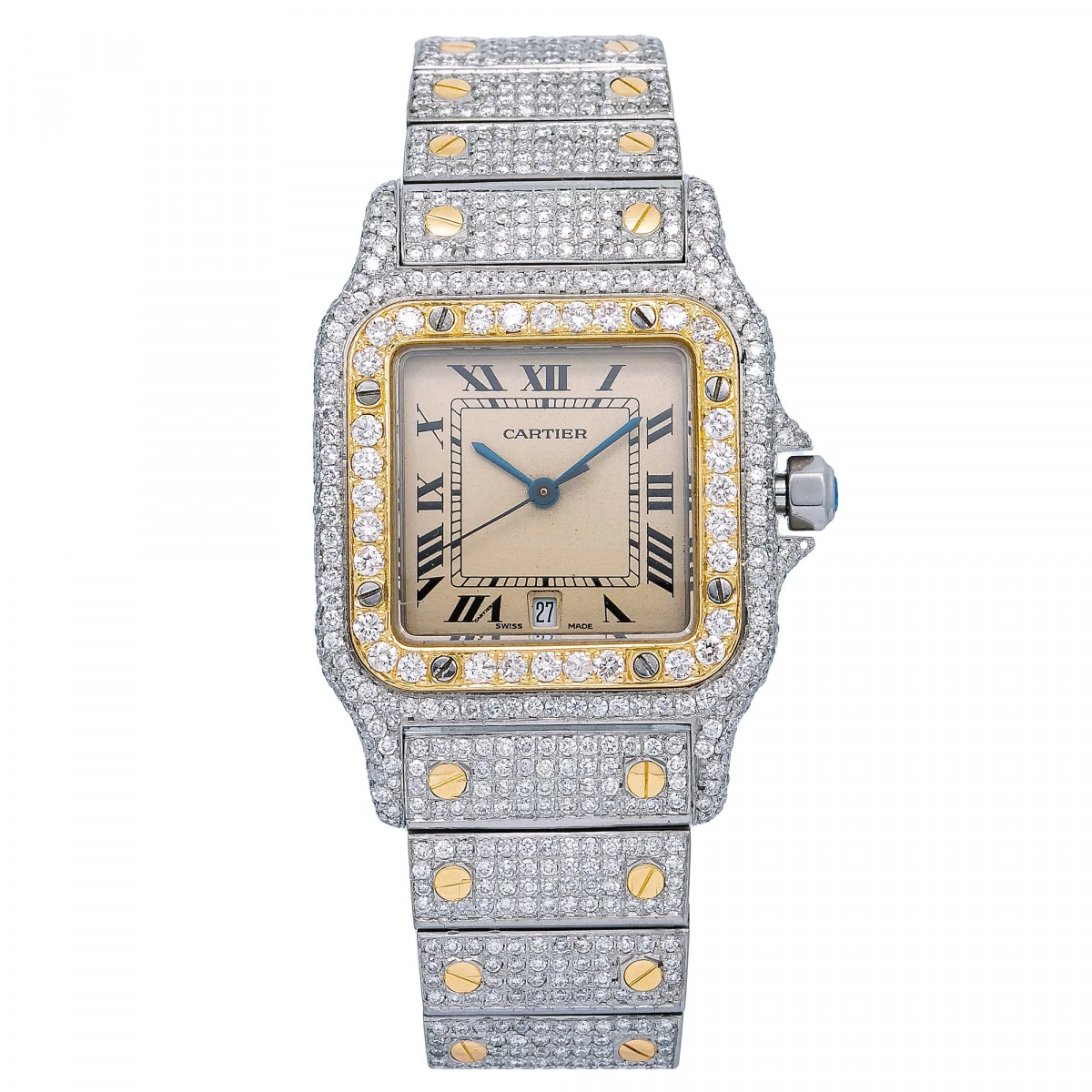 The Women’s Diamond Watch Cartier Santos de Cartier Yellow Gold Champagne Dial is a stunning timepiece that will make a statement wherever you go. Crafted from 18K yellow gold and stainless steel, this watch features a bezel set with sparkling white diamonds and a champagne dial with Roman numeral hour markers. The sapphire crystal protects the dial and the watch is water resistant up to 30 meters. The watch is finished with a yellow gold bracelet with a deployment clasp for added security.This watch is perfect for any occasion and will make a great gift for someone special. With its timeless design and luxurious materials, this watch is sure to be treasured for years to come.