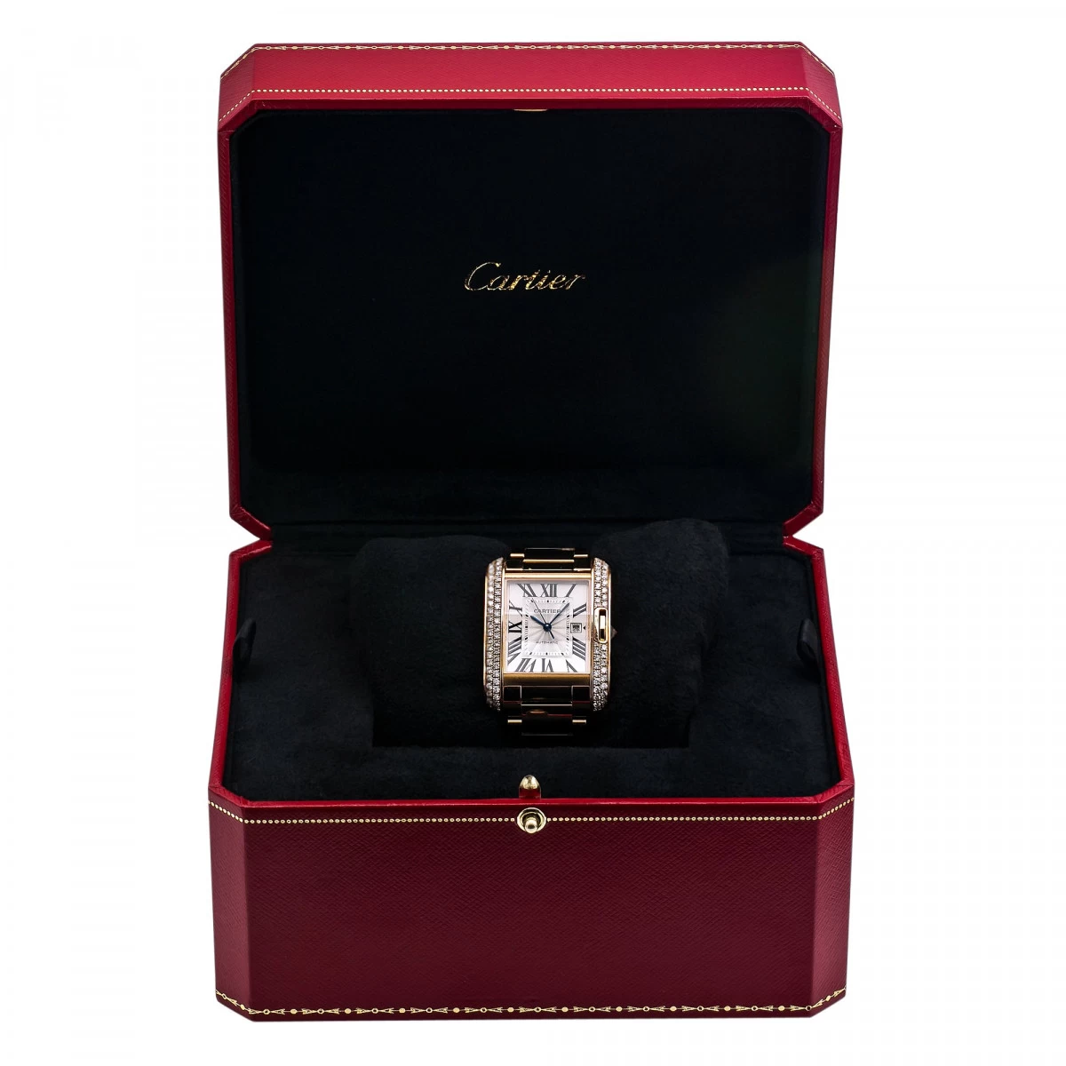 The Cartier Tank Anglaise Rose Gold 30mm Silver Tone Dial Women’s Diamond Watch is a stunning timepiece that is sure to make a statement. Crafted from 18K rose gold, this watch features a bezel set with 1.74 carats of sparkling white diamonds and a silver tone dial with a sapphire crystal. The bracelet is also crafted from 18K rose gold and is sure to add a touch of elegance to any outfit. The watch is powered by an automatic movement and is water resistant up to 300 meters. This watch is perfect for any occasion and is sure to be a treasured piece for years to come.